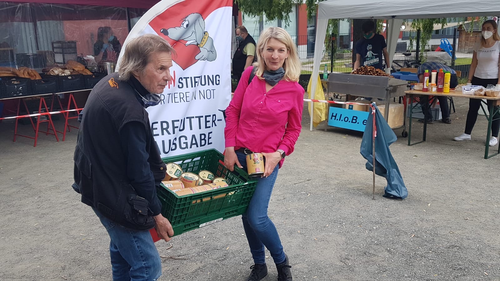 Das  passende Stichwort, das ihn denn auch schnell seinen entspannten Zuschauerplatz verlassen und  Kaffee wie auch Zigarette kalt werden lässt.  Denn schließlich geht es um sein Herzensanliegen, den  Tierschutz,  und seine zu dem Zweck vor knapp zwei Jahren  gegründete Stiftung. 220  Vereine haben Uli Stein und seine Agentin Katja Seifert seither bereits mit Spenden unterstützt und  damit  Waschbären, Tigern, Pferden, Schafen, Katzen, vor allem jedoch unzähligen Hunden helfen und nicht selten  das Leben retten können.  An diesem Tag, dem 10.6.2020, setzt der Karikaturist einen weiteren Meilenstein mit einem Projekt, das ihm schon lange und besonders am Herzen liegt: Die Kooperation mit der von Mario Cordes ins Leben gerufenen, gemeinnützigen Obdachlosenhilfe Hannover. Dank Uli Steins‘ Initiative und Unterstützung  werden die Wohnungslosen unserer Landeshauptstadt fortan bei der wöchentlichen Lebensmittelausgabe  nicht nur mit Brot, Gemüse, Obst und Konserven versorgt, sondern mit Hunde- und Katzenfutter und bei Bedarf auch mit Leinen, Decken und Körben.