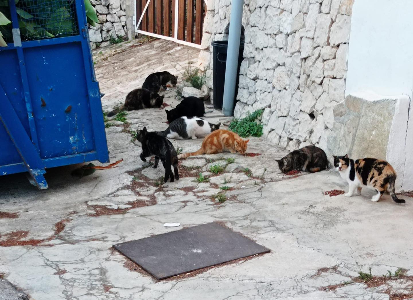 eingerichtet. Freiwillige versorgen die 213 Katzen und kennen diese genau. Jede neu zugelaufene oder dort ausgesetzte Katze wird eingefangen und kastriert, die Kranken eingeschläfert.